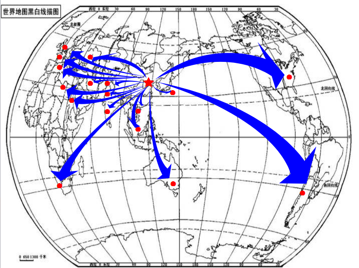 全球:东南亚、东北亚、中亚、西亚、东欧、俄罗斯、非洲、新西兰、澳大利亚)